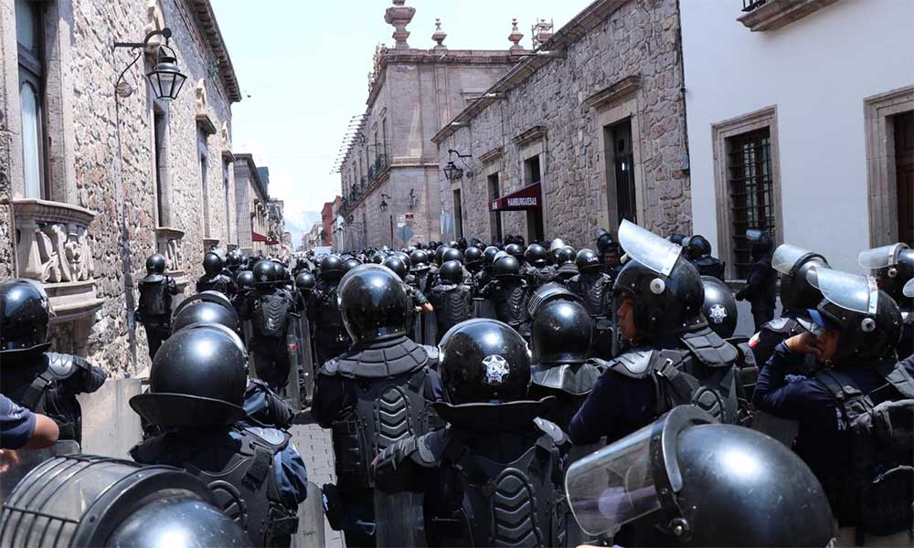 Tras agresión de manifestantes, Policía Michoacán refuerza operativo en Centro Histórico