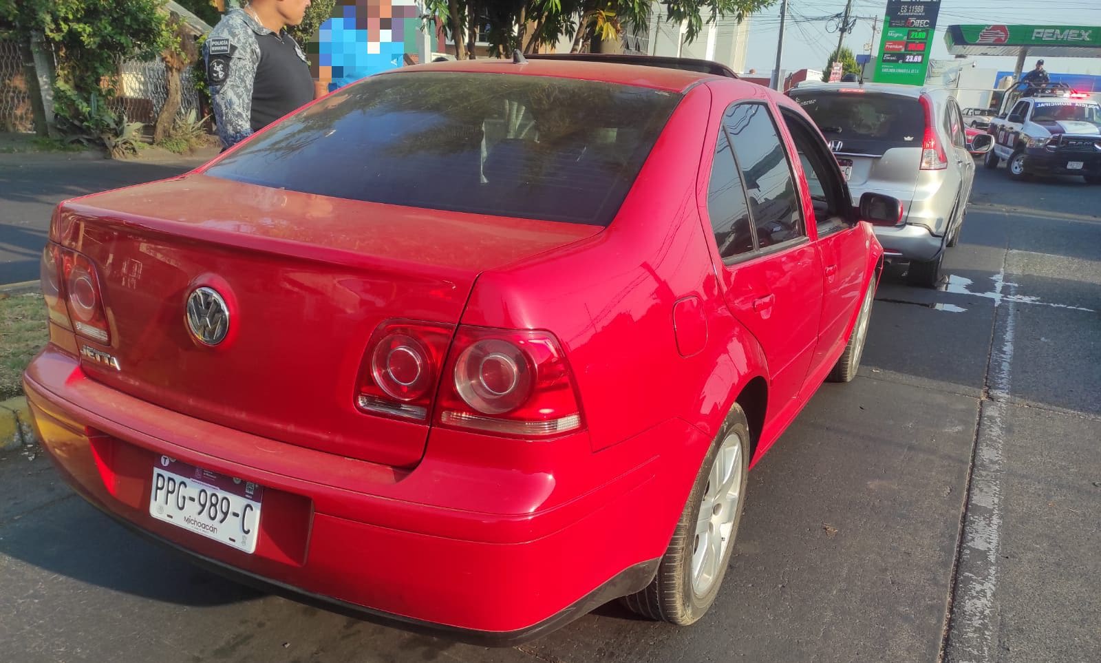 Tras recibir un llamado de emergencia al 911 donde alertaban sobre el robo con violencia de un vehículo marca Volkswagen, los efectivos de la Dirección de Tránsito y Movilidad, así como de la División de Caminos de la Guardia Civil, en coordinación con personal de Guardia Nacional (GN), Fiscalía General del Estado (FGE) y autoridades municipales activaron el Código Rojo para dar con los presuntos responsables.