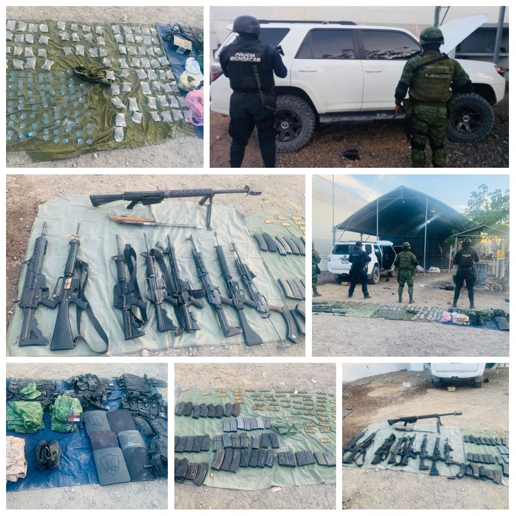 Tras operativo en Tanhuato, se aseguraron 10 fusiles, 647 cartuchos y 177 dosis de drogas