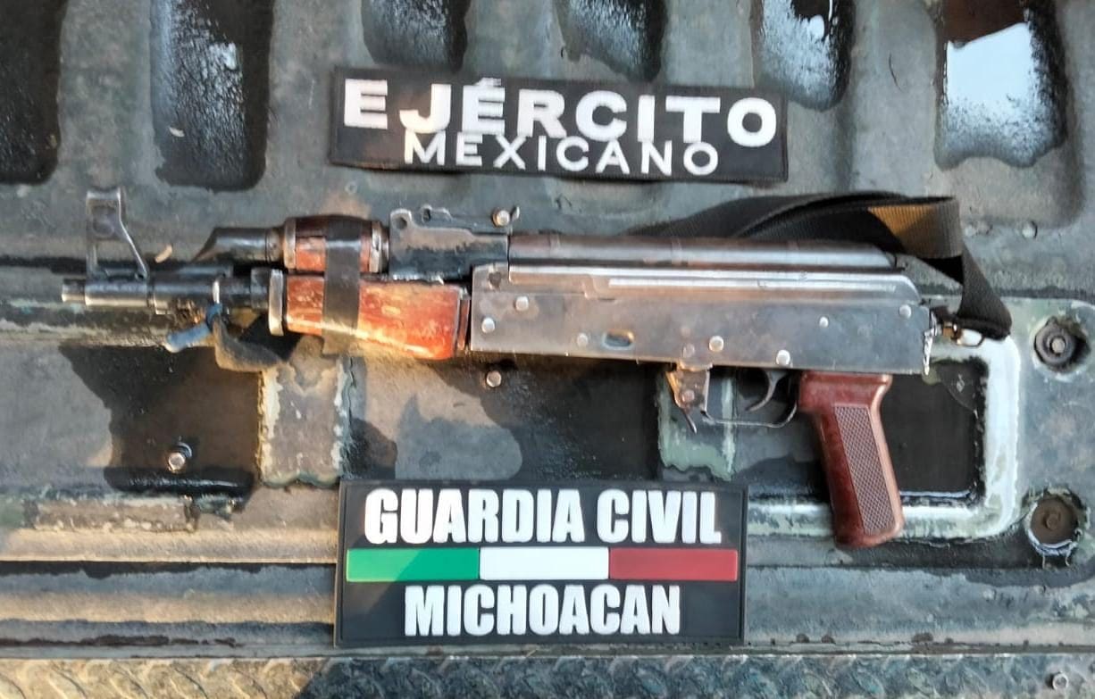 Momentos después, sobre un camino de terracería visualizaron un arma de fuego larga en estado de abandono, tipo Ak-47. Fue asegurada y puesta a disposición de la autoridad correspondiente.