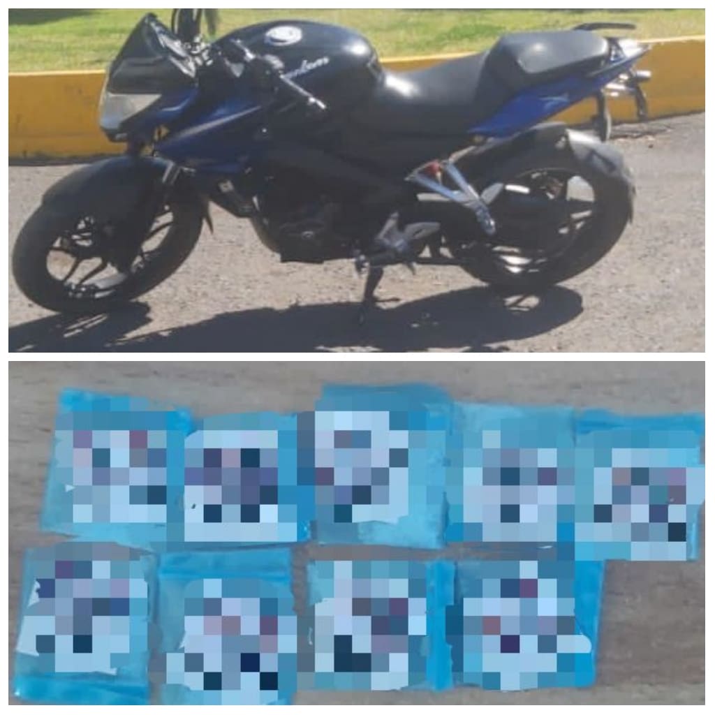 La acción operativa tuvo lugar en la colonia Hacienda del Valle de esta ciudad, sitio donde los agentes del orden realizaron la detención de un hombre, mismo que tripulaba una motocicleta de la marca Bajaj, la cual tras verificar sus antecedentes de se confirmó que tiene reporte de robo vigente; asimismo, entre sus pertenencias se localizó la citada droga.