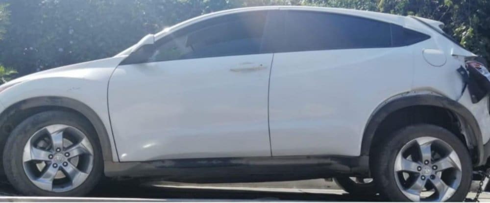 • Vehículo marca Honda, línea HR-V, color blanco.