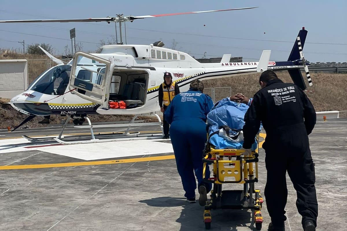 Morelia, Michoacán, 03 de junio del 2024. La Secretaría de Seguridad Pública (SSP) logró un traslado aéreo exitoso de un paciente con quemaduras desde Morelia hasta el Hospital Nacional de Rehabilitación (INR) en la Ciudad de México, luego de sufrir una quemadura eléctrica.