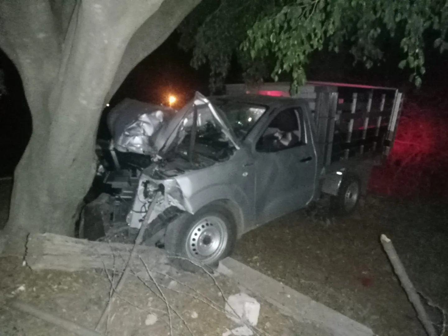 El accidente ocurrió alrededor de las 10:11 horas de este jueves, cuando los ocupantes de una camioneta Nissan perdieron el control del vehículo y se salieron de la cinta asfáltica, chocando contra un árbol.