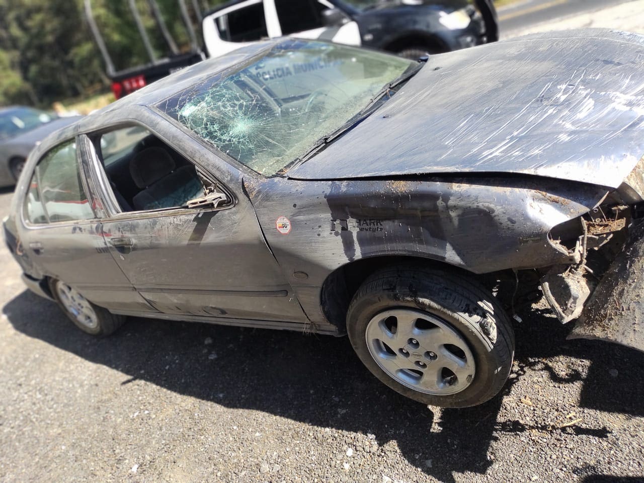 Se trata de un vehículo Nissan sentra 2000 color gris con placas del Estado de México, el cual era conducido por un hombre de 30 años de edad, con domicilio en Sábana del Madroño, al ser valorado presenta crisis nerviosa, golpe contuso en rotula derecha, dolor arcos costales lado derecho, hematoma en occipital del cráneo lado izquierdo, hemorragia nasal, se traslada por sus propios medios.