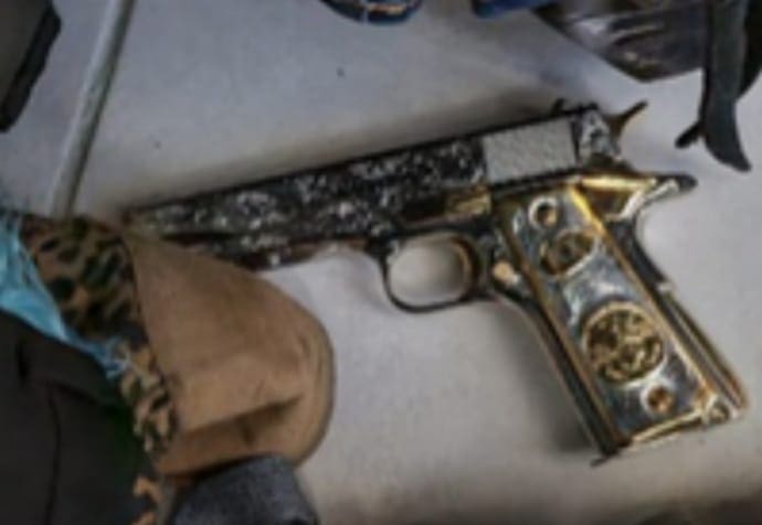 En otro domicilio, ubicado en la colonia Residencial Chapalita, de Guadalajara, Jalisco, se detuvo a Tifany “C”, a quien se les aseguraron ocho armas cortas, seis armas largas, 34 cargadores para armas de fuego, seis teléfonos celulares, numerario, una granada de gas, documentos diversos, un disco duro, cartuchos, aproximadamente 1 kilo de hierba verde seca con características propias de la marihuana y un vehículo.