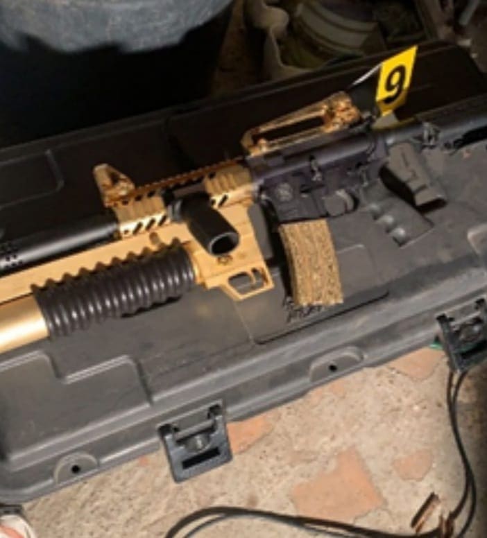 En el segundo domicilio, ubicado en la colonia Revolución, de Guadalajara, Jalisco, se logró la detención de José “H”, a quien se le aseguró un lanza granadas, tres armas cortas, 106 cartuchos de diferentes calibres, cinco cargadores, nueve teléfonos celulares, dos memorias USB, dos laptop, diversa documentación y un vehículo.