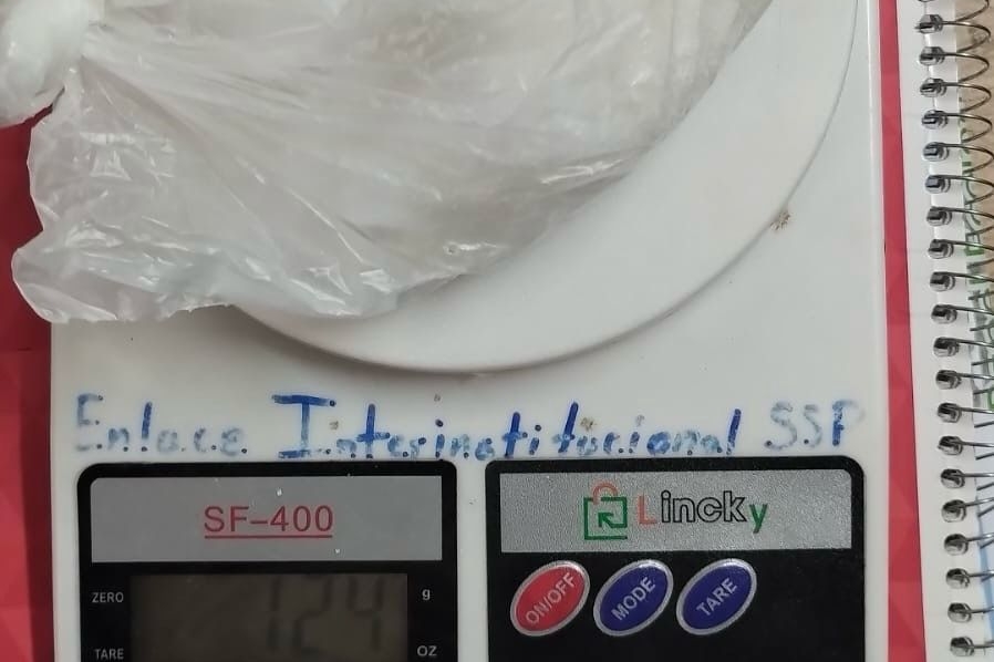 Durante la inspección del automóvil, las autoridades aseguraron una bolsa de plástico que contenía 124 gramos de metanfetamina. Los detenidos fueron identificados como Erika “S”, Kasy “P”, Josué “A”, Ricardo “G”, Mauricio “E”, José “H” y Jonathan “B”.