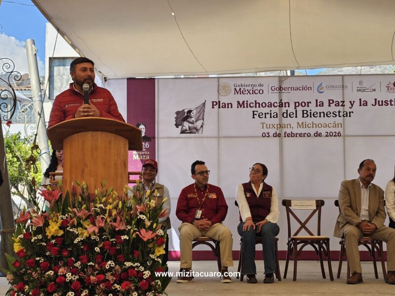 Tuxpan, Michoacán, 3 de febrero de 2026.– El presidente municipal de Tuxpan, licenciado David López Flores, inauguró esta mañana la Feria del Bienestar en el Jardín Municipal José María Morelos y Pavón, como parte del Plan Michoacán por la Paz y la Justicia impulsado por la presidenta Claudia Sheinbaum Pardo.