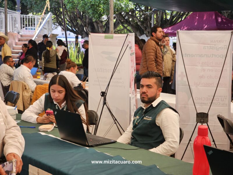 La feria ofrece trámites de programas sociales, servicios de salud, pensiones, orientación y módulos especiales como el de desarme voluntario, con el objetivo de fortalecer la seguridad social y el desarrollo del municipio de Tuxpan y en la región de Zitácuaro.
