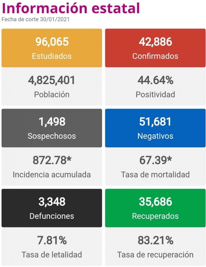 Seguimos en alerta en Zitácuaro. Hoy el Comité Estatal de Seguridad en Salud, en https://michoacancoronavirus.com/nuevaconvivencia/ con corte al 30 de enero de 2021, reporta: