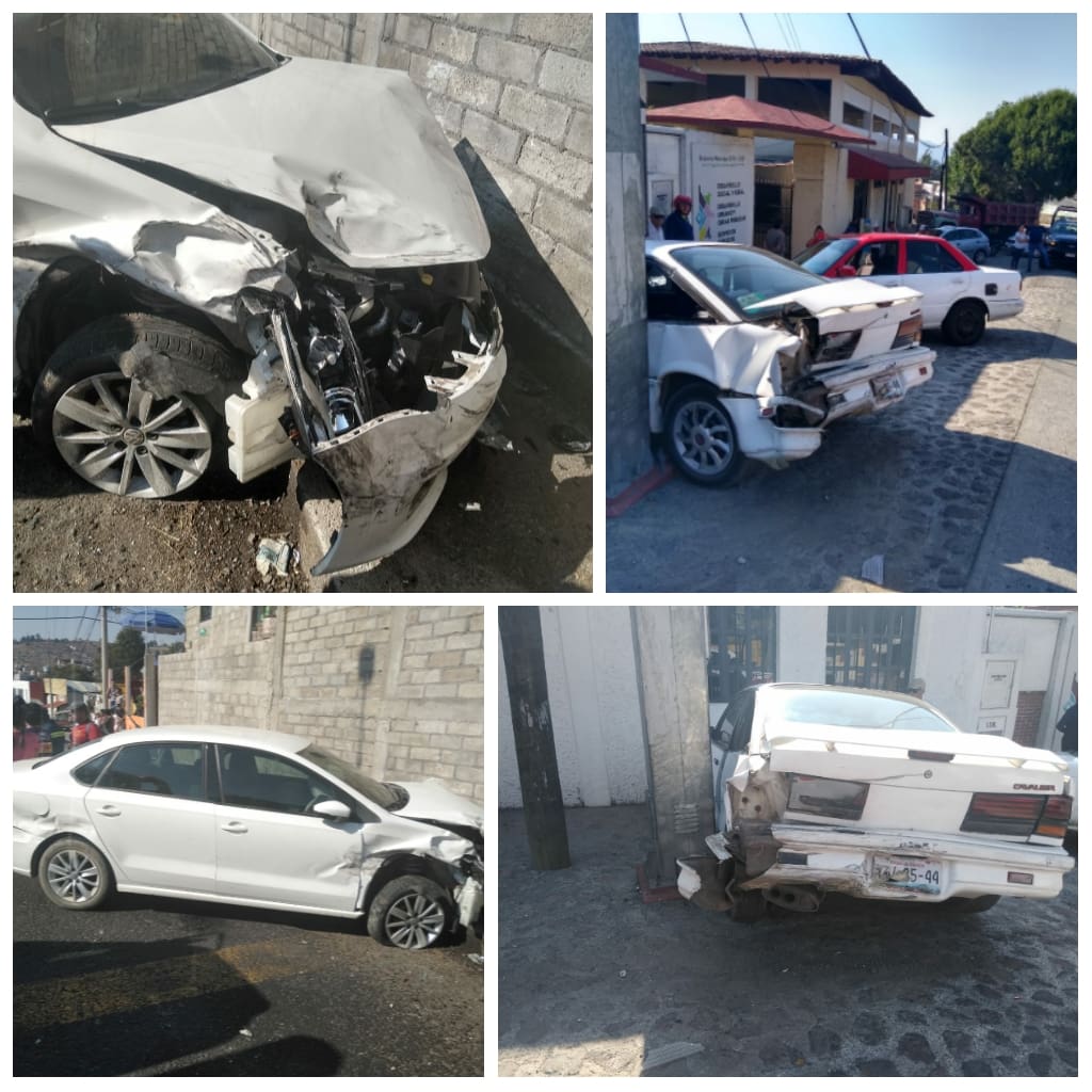 Al arribar al lugar se confirma la novedad dónde se ven involucrados 4 vehículos, el primero es un Volkswagen Tipo Vento color blanco con placas de circulación de esta entidad, conducido por la C. “X” de 26 años de edad, con domicilio en la calle Pablo González colonia El Moral; a la valoración de los elementos, presenta hematoma en labio inferior, más crisis nerviosa, no amerita de traslado a algún nosocomio se retira del lugar por sus propios medios.