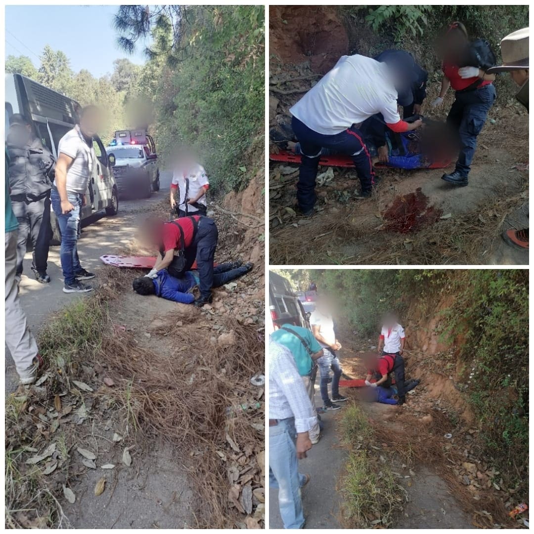 Por lo que de inmediato por instrucciones del Comisario Carlos Chico Álvarez Secretario de Seguridad Pública Municipal los uniformados se trasladaron al lugar en mención, donde se contactan con personal de bomberos quienes brindan atención y trasladan al lesionado al Hospital Santa Rosa para su valoración médica.