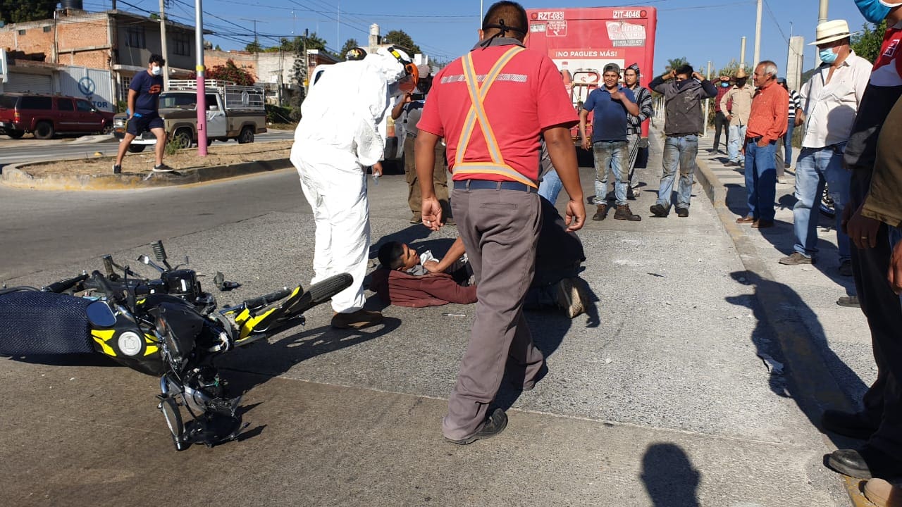 En Zitácuaro un Joven sufrió varias lesiones al derrapar la motocicleta en la que viajaba