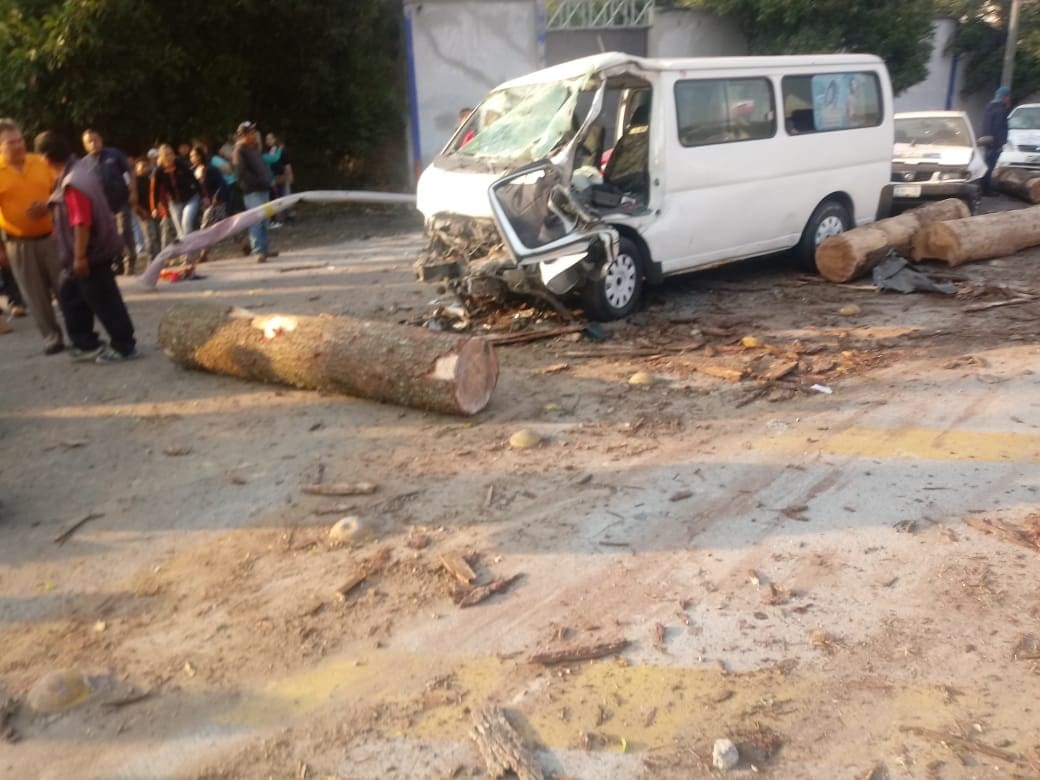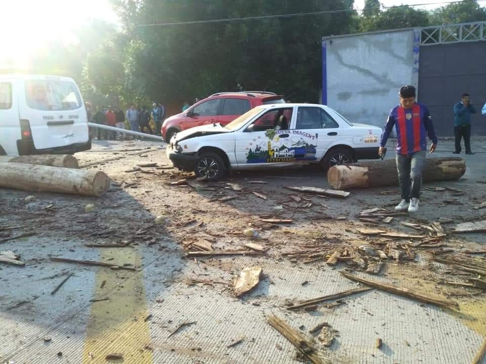 De lo sucedido, comentaron testigos oculares que el camión tipo rabón se quedó sin frenos a la altura del Hotel El Dorado, impactado a todos los vehículos y ocasionando daños con los troncos que transportaba.