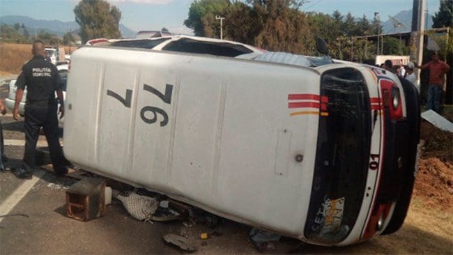Zitácuaro, Michoacán.- Según reporte de la Dirección de Seguridad Pública municipal de Zitácuaro, la falta de precaución y el acceso de velocidad fueron las causas de un accidente vehicular en la carretera federal No. 15 México – Nogales, a la altura del CETIS 28 de esta ciudad, en donde resultaron varios lesionados, la mayoría estudiantes de dicha institución.