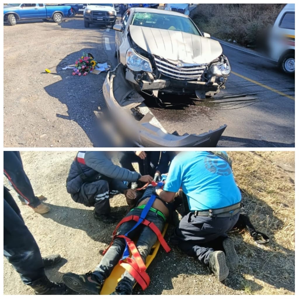 En relación a los hechos se pudo constatar que dicho sujeto viajaba a bordo de una motocicleta marca Ventó y al tomar la curva invadió el carril contrario impactándose con un vehículo marca Chrysler, tipo Cirrus, por lo que al lugar arriban elementos de la Subdirección de tránsito del estado haciéndose cargo de la situación.
