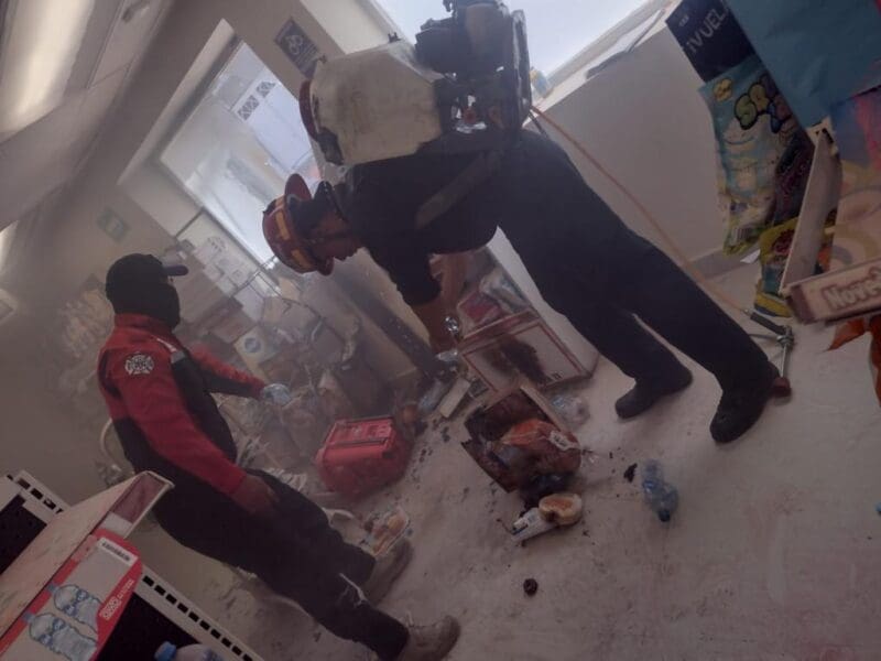 Al llegar al sitio, los bomberos encontraron que la tienda OXXO estaba envuelta en llamas y procedieron a realizar maniobras de combate contra incendios. Después de varios minutos lograron sofocar el fuego, pero la tienda quedó totalmente calcinada.