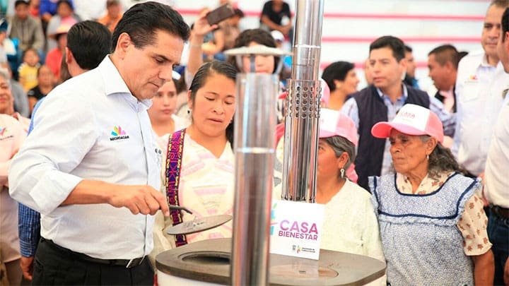 Zitácuaro, Michoacán.- Para coadyuvar en que las michoacanas en situación de vulnerabilidad mejoren sus condiciones de salud y socioeconómicas, el Gobernador de Michoacán Silvano Aureoles Conejo arrancó el programa Casa Bienestar en este municipio del Oriente de la entidad, con la entrega en una primera etapa de 100 estufas ecológicas para igual número de mujeres.