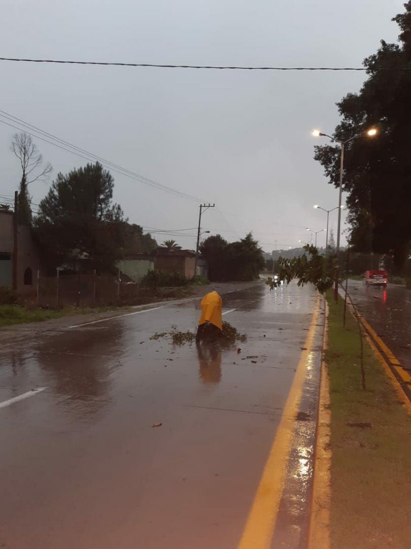 Dentro de los trabajos realizados, a la altura del cuartel del C5, sobre el periférico, asistieron a los vecinos de este punto, retirando ramas caídas sobre el camellón, las cuales obstruían el tránsito vehicular. Posteriormente se trasladaron a la segunda manzana de Nicolás Romero, para llevar a cabo recorridos en esta zona de alto riesgo que fue afectada por el deslave del Cerro Cacique.