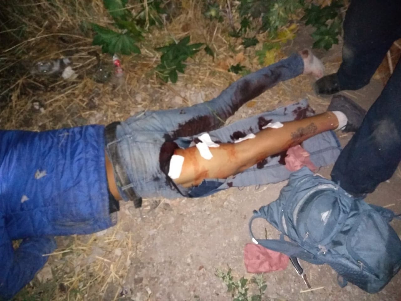 A la valoración de los elementos presenta 5 heridas por arma de fuego en extremidad inferior izquierda y 2 heridas por arma de fuego en extremidad inferior derecha, es atendido en el lugar y posteriormente abordado a la unidad para su traslado al Hospital Regional, siendo