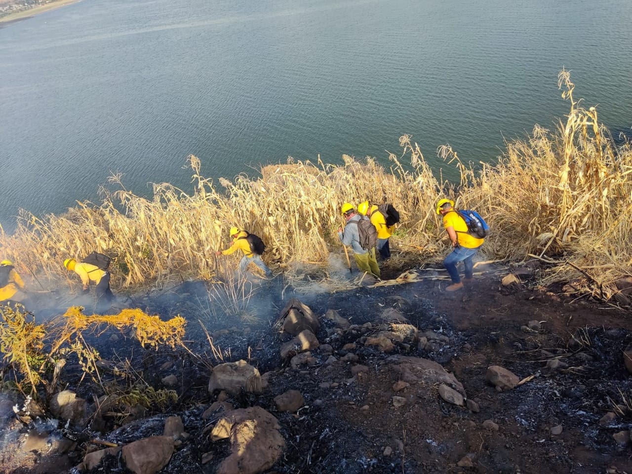 Siguiendo el protocolo para la atención de incendios forestales, los brigadistas realizan brechas cortafuego para evitar que las llamas se propaguen y poder controlar el fuego.