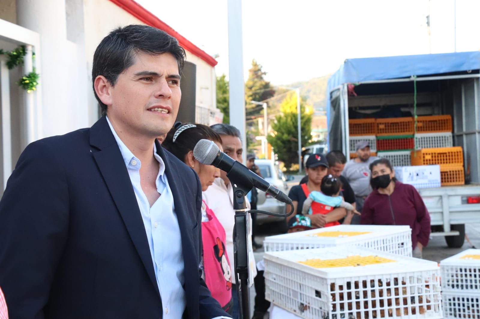 Zitácuaro, Mich., a 4 de enero del 2023.- Toño Ixtláhuac encabezó la entrega de más de 1500 pollitas doble propósito en la tenencia de Curungueo y sus localidades, favoreciendo a 150 hogares.