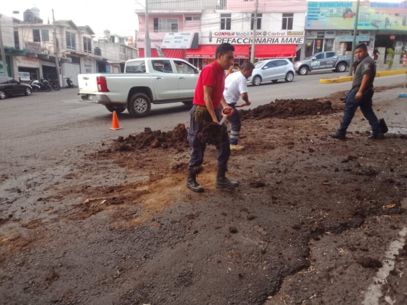De acuerdo con el informe de la corporación, los trabajos iniciaron a las 16:22 horas, luego de localizar abono de origen animal esparcido sobre un carril de la cinta asfáltica. La dependencia informó que tres elementos a bordo de la unidad 1916 utilizaron herramientas manuales para retirar el material y restablecer el flujo vehicular en su totalidad.