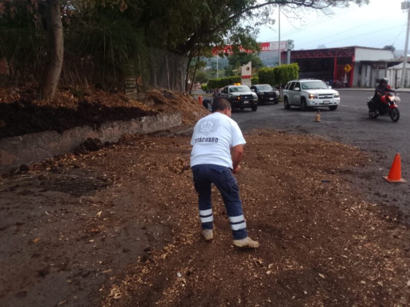 ZITÁCUARO, Mich. – Elementos del Heroico Cuerpo de Bomberos de Zitácuaro realizaron labores de limpieza la tarde de este martes 21 de abril sobre el Boulevard Suprema Junta Nacional Americana, tras el reporte de residuos que obstruían la vialidad.