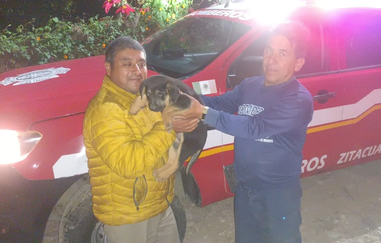Bomberos rescatan a un perro atrapado en una barranca en Zitácuaro