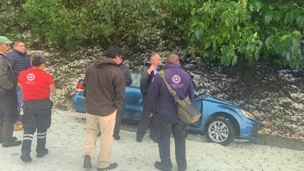Cae vehículo a causa de granizada en la carretera Zitácuaro- Lengua de Vaca
