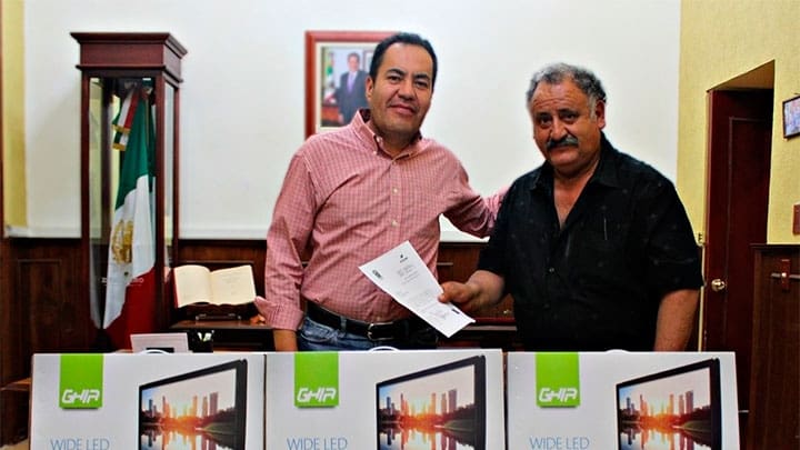 Zitácuaro, Michoacán.- Derivado de la solicitud que le hicieron alumnos de la secundaria técnica 129, con sede en la tenencia de Aputzio de Juárez, el presidente municipal Carlos Herrera Tello, entregó equipos de cómputo para el desarrollo educativo de este plantel, estos artículos fueron recibidos por el director Jaime Vera Cambrón.