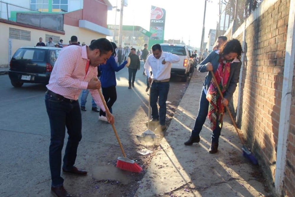 Esta actividad consistió en barrer las cercanías a algunas escuelas, derivado de ello participaron alumnos del Centro de Bachillerato Tecnológico industrial y de servicios No. 162 (CBTis), del Conalep, la preparatoria José María Morelos, el Colegio de Bachilleres, la preparatoria Melchor Ocampo, el Colegio de Bachilleres y el jardín de niños Miguel Carrillo, a quienes agradeció su iniciativa de participar.