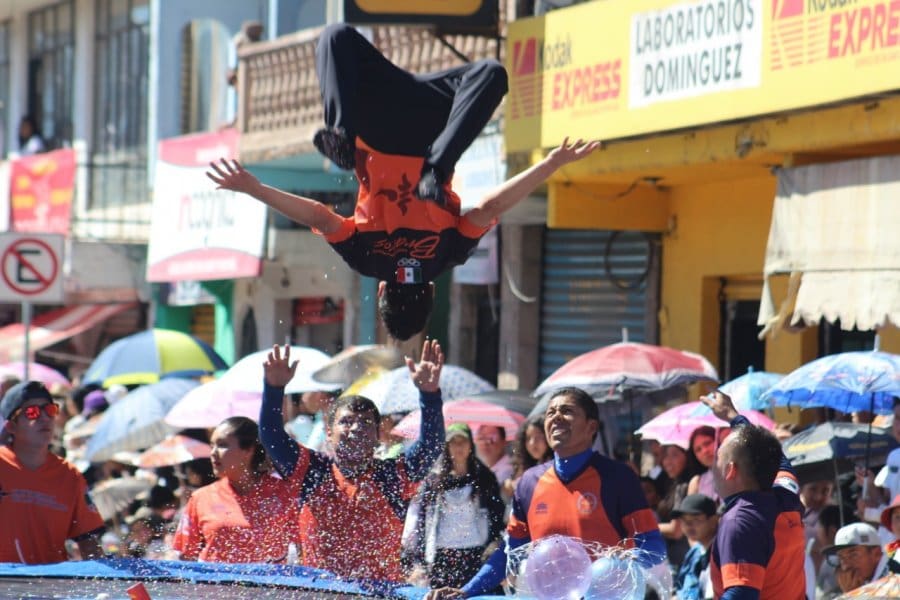 También participaron las escuelas de nivel medio y superior del municipio con tablas rítmicas y pirámides; escuelas de gimnasia, grupos de adultos mayores, asociaciones de charros y vaqueros, además de 37 carros alegóricos.