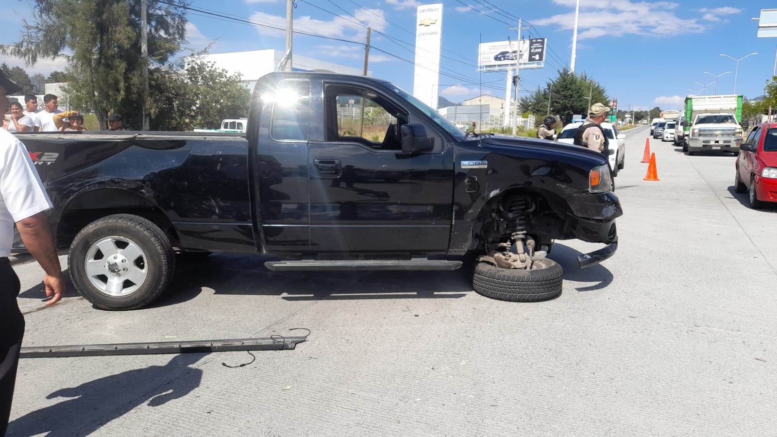 Un choque entre una camioneta Ford Lobo 150 de color negro y un taxi del transporte público se registró la tarde de este lunes en la carretera federal Zitácuaro-Toluca, a la altura del estadio Ignacio López Rayón, dejando como saldo dos personas lesionadas.