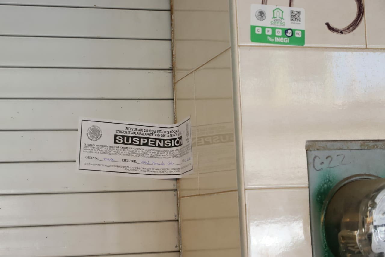 Lázaro Cárdenas, Michoacán, a 5 de junio de 2020.- La Secretaría de Salud de Michoacán (SSM), a través de la Comisión Estatal para la Prevención Contra Riesgos Sanitarios (Coespris), clausuró cinco establecimientos por no cumplir las medidas implementadas por el Gobierno del Estado para proteger a la población de COVID-19.