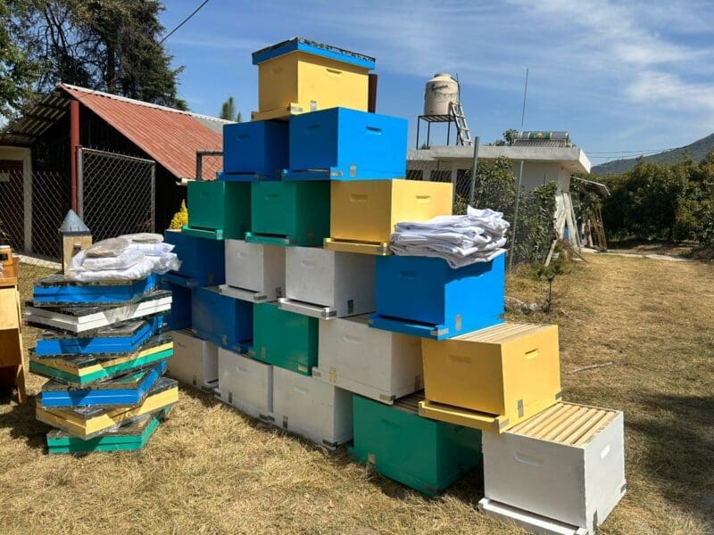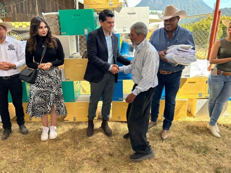 Derivado de esta sinergia, el presidente municipal llevó a cabo la entrega de equipo para mejorar esta actividad agroalimentaria, dotando de cámaras de cría, protecciones y ahumadores, en benficio de 50 productores de miel y sus familias.
