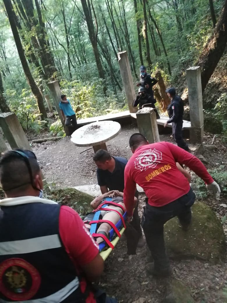 Zitácuaro. Mich. El Cuerpo de Bomberos y Protección Civil, recibió un reporte via telefónica, manifestando que había una persona lesionada en la cascada de la localidad de San Juan Zitácuaro, por lo que acudieron al lugar a prestar su servicio.