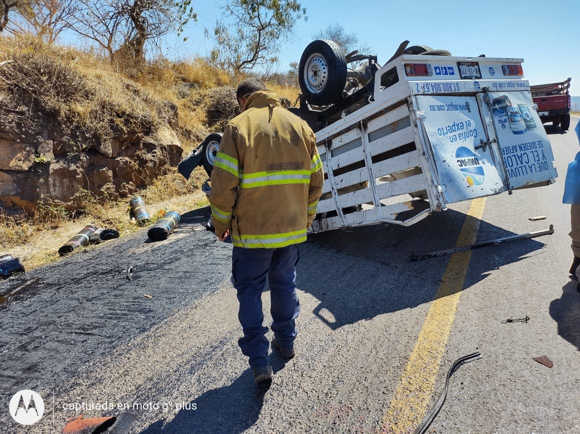 Zitácuaro. Mich. Bomberos del municipio, recibieron un reporte vía telefónica, manifestando que en la carretera federal Zitácuaro- Morelia, a la altura del kilómetro 118+100, se había suscitado una volcadura, por lo que se dirige la unidad 511.