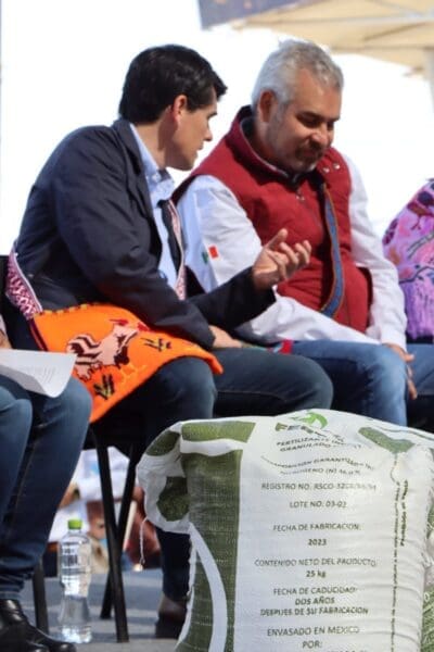 Zitácuaro, Mich., a 11 de marzo del 2023.- Durante la entrega de mil 700 toneladas de fertilizante en benficio de 3 mil 700 productores zitacuarenses y de la región, el gobernador de Michoacán, @AlfredoRamírezBedolla, acompañado del alcalde Toño Ixtláhuac y autoridades de los tres niveles de gobierno, confirmó la coordinación de trabajo para la construcción del próximo hospital del IMSS en Zitácuaro, con una inversión superior a los mil 500 millones de pesos.