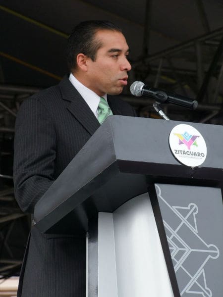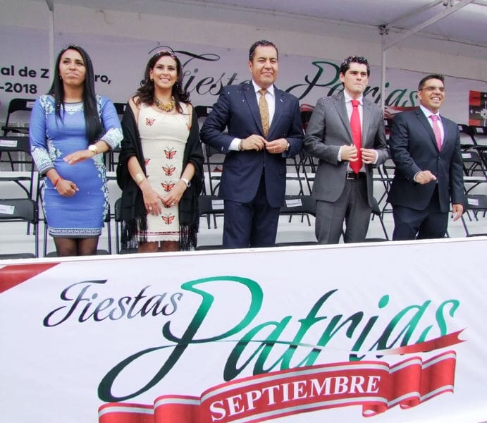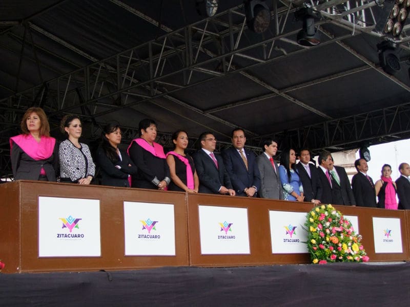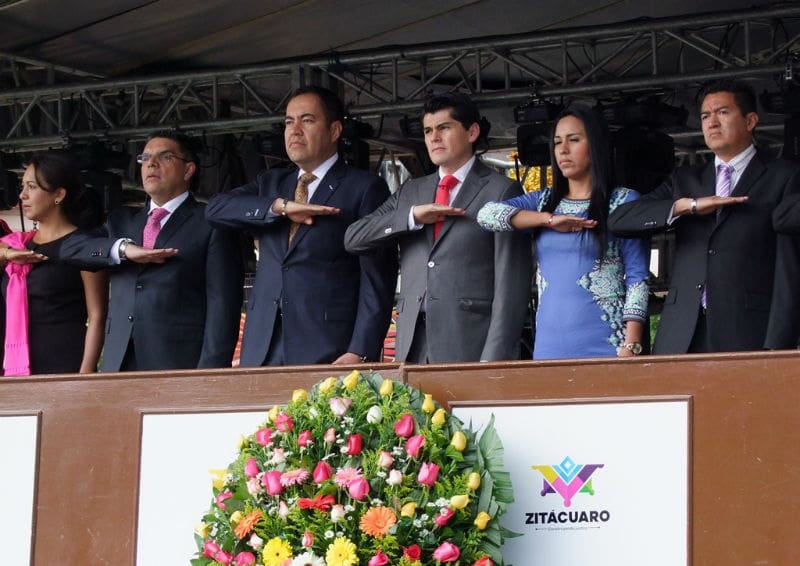 Zitácuaro, Michoacán.- El Ayuntamiento Constitucional 2015-2018, encabezado por el alcalde Carlos Herrera, conmemoró el 205 aniversario del inicio de la Independencia de México, con un acto cívico. La ceremonia se efectuó en la plaza “Benito Juárez”, participando también el diputado federal por el distrito 3, Antonio Ixtlahuac y la diputada local, Mary Carmen Bernal Martínez.