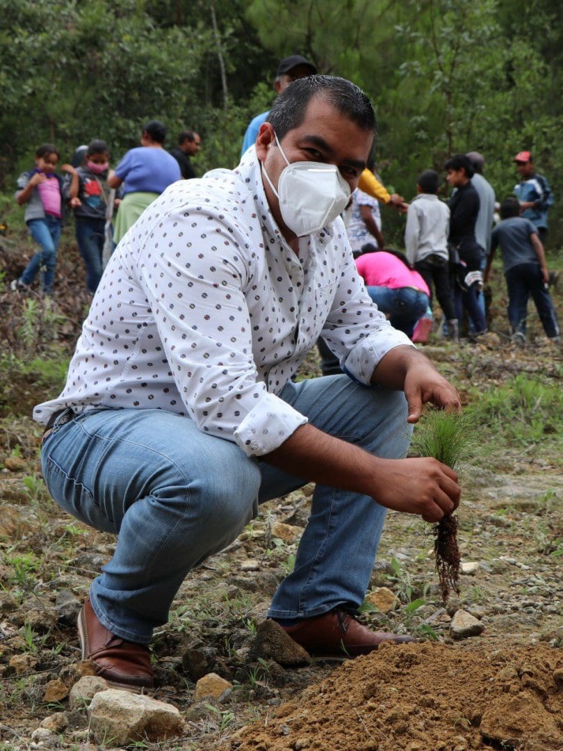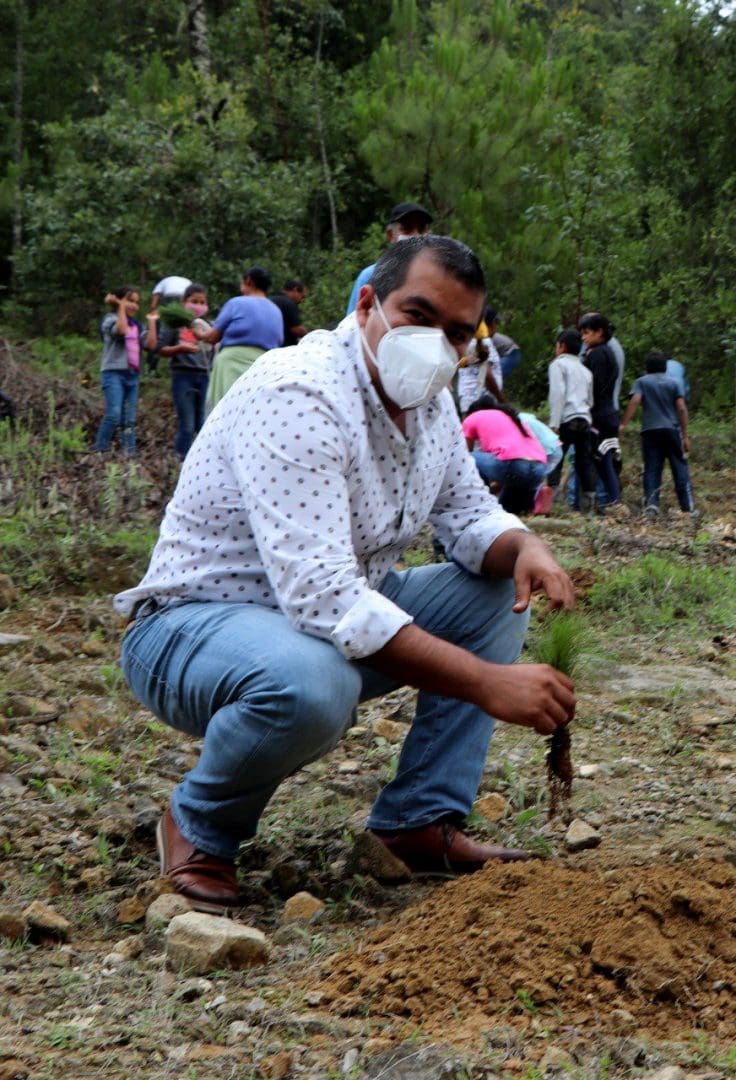 Zitácuaro, Mich., 9 de julio del 2020.- En el marco del Día del Árbol y atendiendo las medidas sanitarias, el alcalde Hugo Alberto Hernández Suárez, junto con su familia; el secretario del Ayuntamiento, Carlos Hurtado Casado; el delegado regional de COFOM, Efraín Sánchez Posadas; vecinos, regidores y algunos funcionarios municipales, encabezaron una de las jornadas de reforestación, en la comunidad de Piedra Atrancada, perteneciente a la tenencia de San Miguel Chichimequillas.