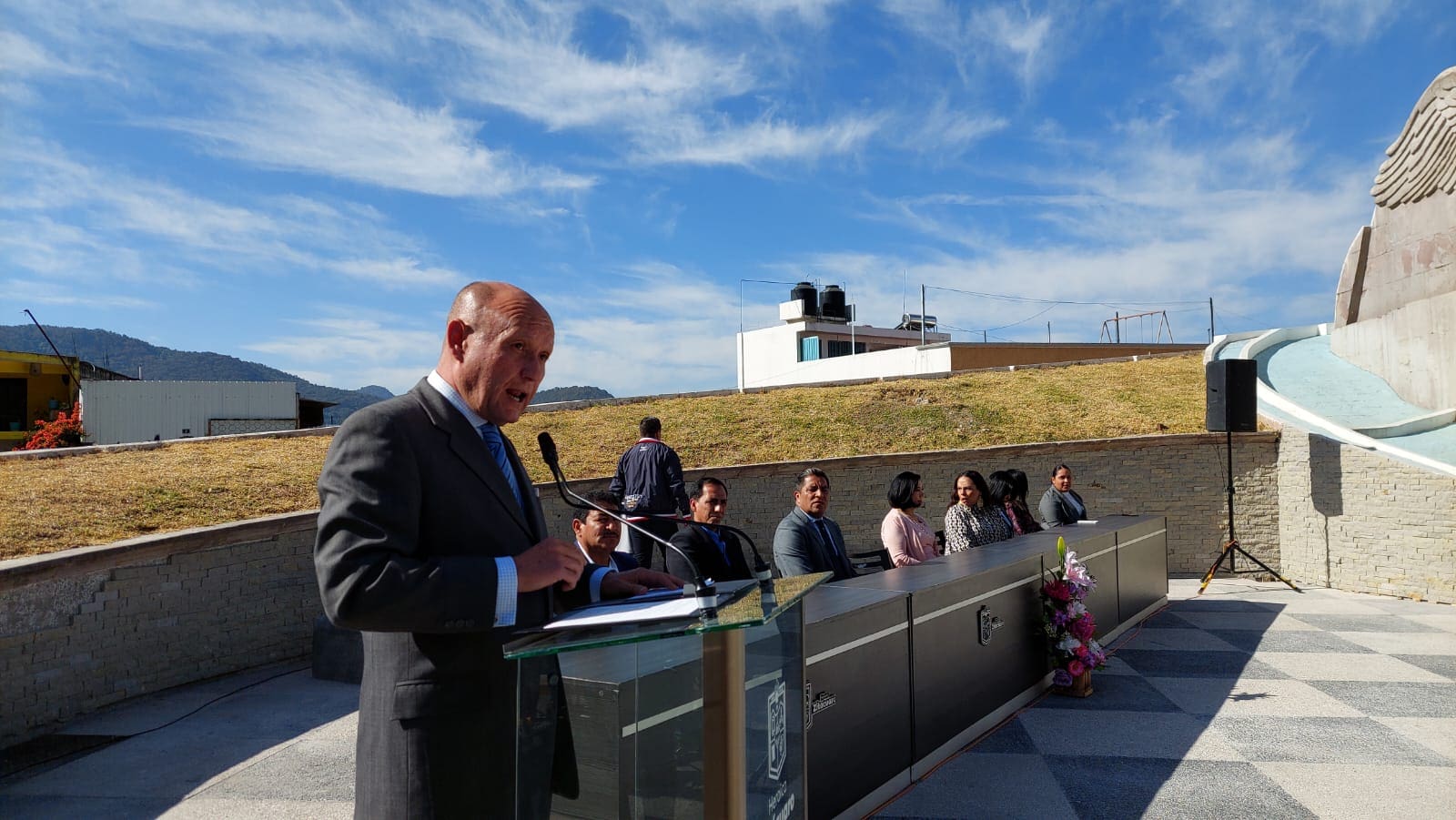 En su mensaje, el Secretario del Ayuntamiento, Eduardo Antonio Sánchez de las Matas Guerrero, señaló que el dia de hoy, enaltecemos a nuestra Bandera Nacional; cuyos colores rojo, blanco y verde, así como el águila devorando a una serpiente, no solo representan nuestra identidad e historia, sino también nuestra fortaleza para dar respuestas de solución al sinfín de problemas que aquejan a nuestra sociedad y con ello, la esperanza de un futuro más promisorio para los mexicanos.