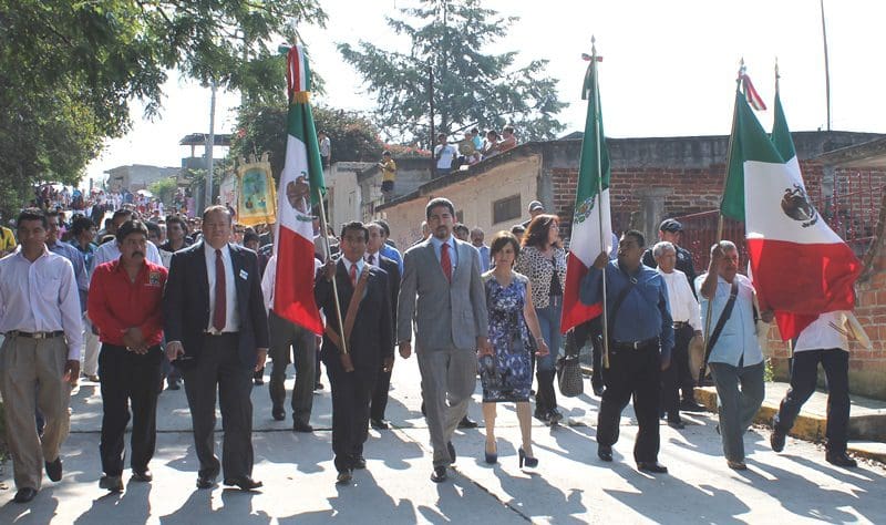 Justo a las 10 y media de la mañana, se dio inicio al tradicional desfile que recorrió las principales calles de la tenencia, cuyos habitantes observaron y participaron de él, ya sea integrándose al recorrido o lanzado confeti a funcionarios municipales.