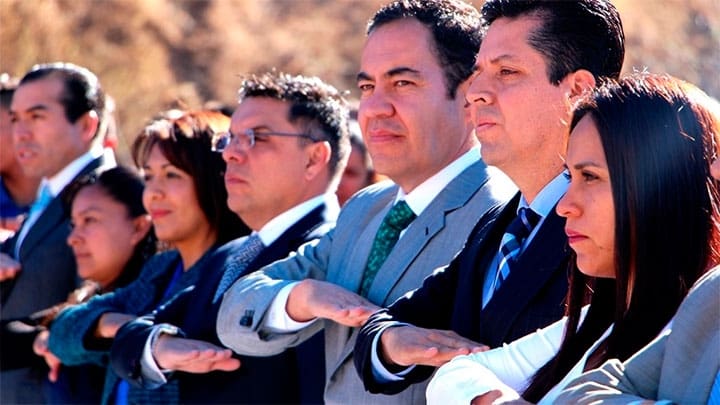 Zitácuaro, Michoacán.- Autoridades municipales de Zitácuaro encabezadas por el alcalde, Carlos Herrera Tello, e integrantes del Cabildo, presidieron los eventos cívicos conmemorativos por el Día de la Bandera y en cuyo acto central, el orador oficial fue el ex diputado federal, Antonio García Conejo.