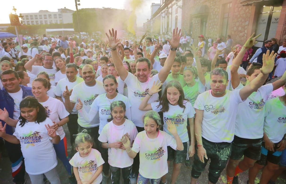 El encargado de la política interna, encabezó la Carrera Atlética por la Paz y la Amistad en Zitácuaro y destacó que bimestralmente participa en eventos deportivos para fomentar el deporte entre los jóvenes, las familias, los niños y las niñas de Michoacán, con la finalidad de prevenir que caigan en las adicciones y cómo una estrategia fundamental para la construcción de la paz a través de la sana competencia.