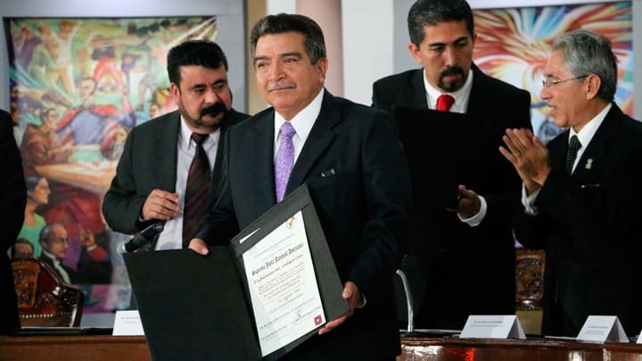 Zitácuaro, Michoacán.- Alfredo Castillo Cervantes, Comisionado Para la Seguridad y desarrollo Integral de Michoacán, así como el Gobernador de la entidad, Salvador Jara Guerrero, acompañaron al Alcalde de Zitácuaro, Juan Carlos Campos Ponce, para encabezar y engalanar la sesión solemne de Cabildo donde fue entregada la Presea Suprema Junta Nacional Americana a la asociación civil Contigo Sí Crece.