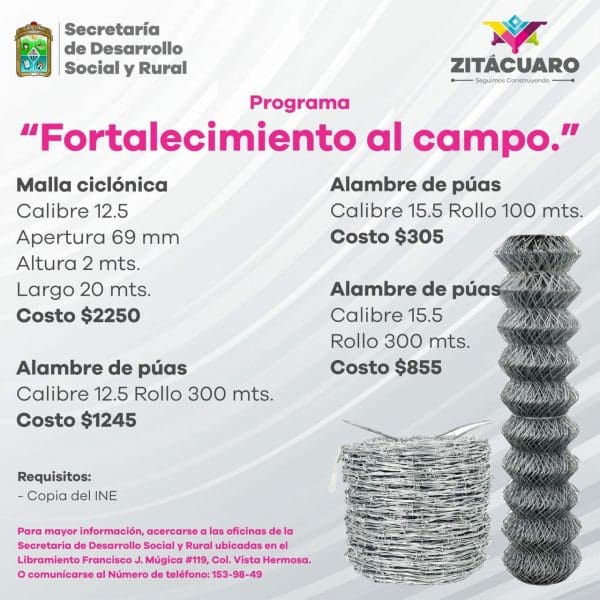Para mayores informes, favor de acudir a las oficinas de la Secretaría de la Mujer, ubicada en Av. Morelia #95 o en la Secretaría de Desarrollo Social y Rural, en Libramiento Francisco J. Mújica #119.
