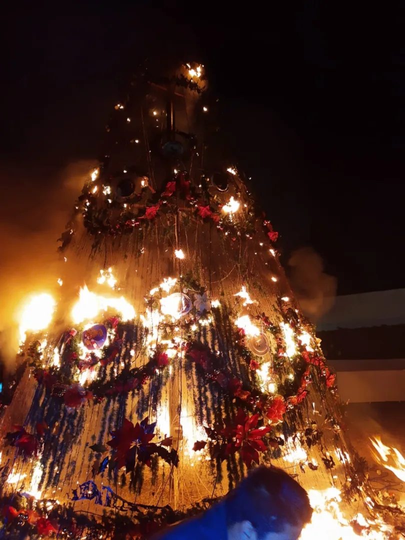 Zitácuaro, Mich., 25 de diciembre del 2019.- La noche del pasado 24 de diciembre, siendo las 23:40 horas, los números oficiales de alerta, recibieron el reporte de que el Árbol Navideño de la plaza Benito Juárez, se incendiaba, el cual fue sofocado en su totalidad por los cuerpos de emergencia.
