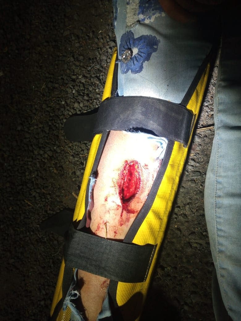 La segunda fémina tiene 28 años de edad, con mismo domicilio, a la valoración presenta herida abulsiva de aproximadamente 10 centímetros en tibia y perone de la extremidad del miembro inferior derecho.